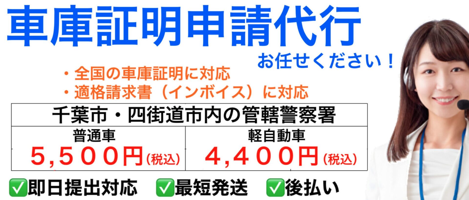 追加料金なしで即日申請に対応しておりますので、お急ぎの場合もご遠慮なくお問い合わせください。